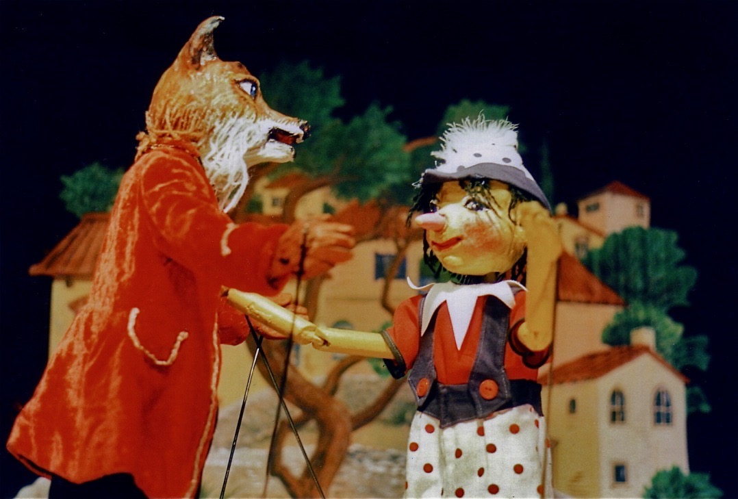 In het bos wordt een tak van een pijnboom betoverd door de Blauwe fee. Nietsvermoedend maakt Gepetto hier een harlekijn van, maar schrikt als de pop, die hij Pinokkio noemt, echt begint te leven. Pinokkio laat zich door de vos en de jongen Lucinolo verleiden om slechte dingen te doen. Hij wordt gewaarschuwd door Krelis de krekel en de Blauwe fee. Als hij alles aan elkaar liegt groeit zijn neus, wat Pinokkio vreselijk vindt. De fee legt hem uit dat zij hem wel wil veranderen in een echte jongen van vlees en bloed, zodra hij kan kiezen tussen goed en kwaad. Uiteindelijk is Pinokkio zo dapper dat hij zijn vader redt uit de buik van de vis en als hij op het droge komt blijkt hij veranderd te zijn in een echte jongen van vlees en bloed.
