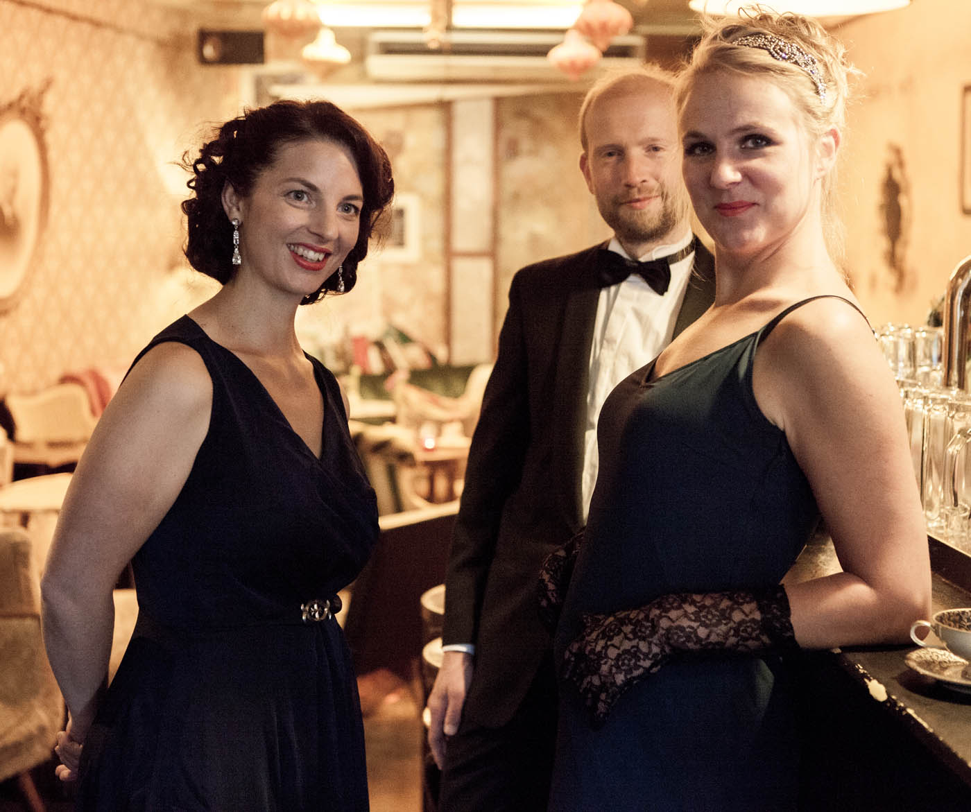 Een sopraan, saxofoon en piano vormen de ingrediënten van het Café Dansant. Zij brengen een luchtig, afwisselend en karaktervol programma met cabaretmuziek uit de ‘Thrilling Thirties’.