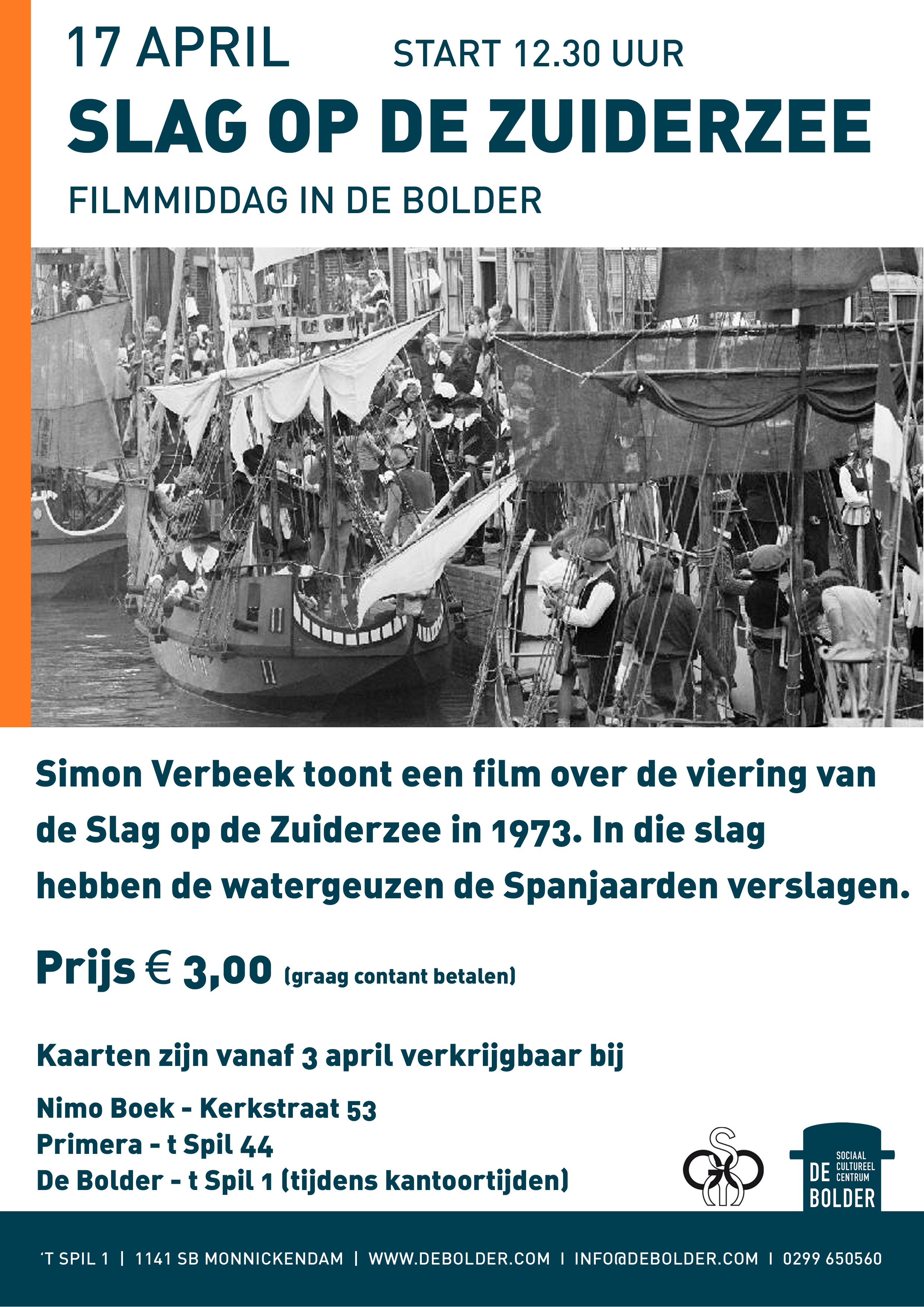 Vanwege de viering van de Slag op de Zuiderzee wordt er op 17 april een film getoond van de feesten rondom de slag op de Zuiderzee in 1973.