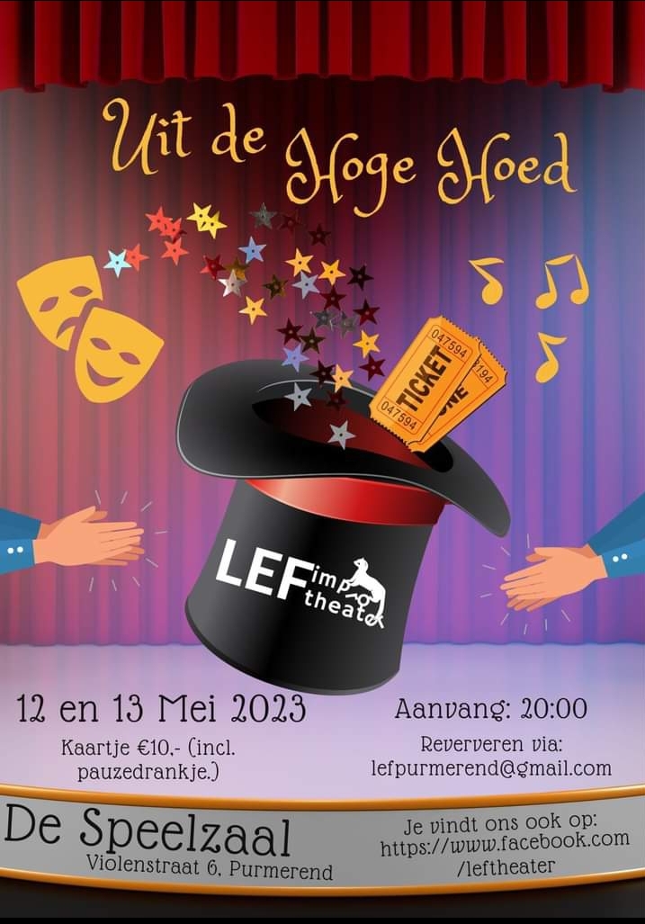 Improvisatiegroep LEF (Liever Een Fret) goochelt op vrijdag 12 mei en zaterdag 13 mei twee bijzondere voorstellingen "Uit de hoge hoed " .