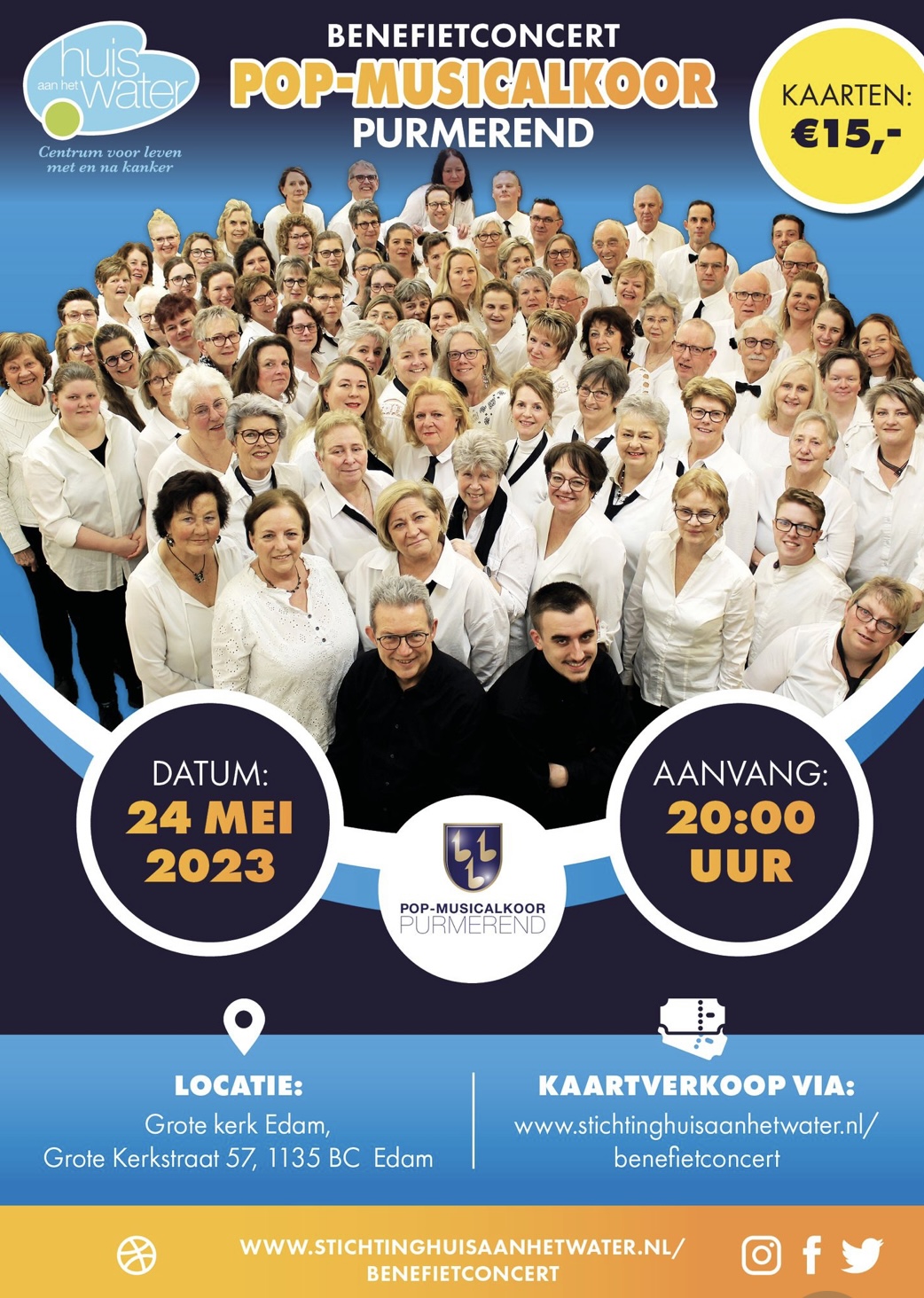 Op 24 mei om 20.00 uur staat Pop-Musicalkoor Purmerend weer op de planken! Dit keer voor een fantastisch doel: Het Huis aan het Water. De opbrengst van de kaartverkoop komt geheel ten goede aan Het Huis aan het Water. Met jouw aanwezigheid geniet je dus niet alleen van een geweldige avond vol muziek, maar steun je meteen dit prachtige doel!