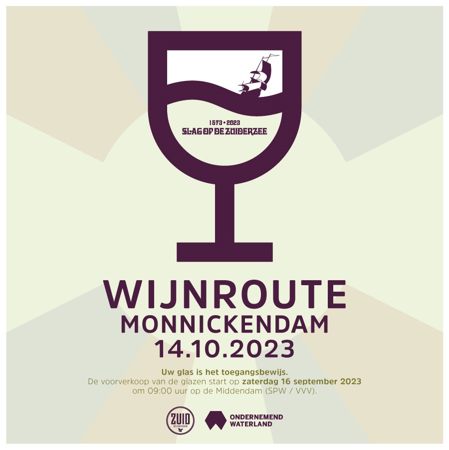 Om deel te kunnen nemen aan de Wijnroute Monnickendam 2023 op 14 oktober dien je in het bezit te zijn van een glas van deze editie. Op 16 september vindt de verkoop hiervan plaats, vanaf 9.00 uur op de Middendam. Er zijn dit jaar 750 glazen en er worden maximaal 6 glazen per persoon verkocht. Er worden alleen contante betalingen geaccepteerd. Kom op tijd, want op=op!