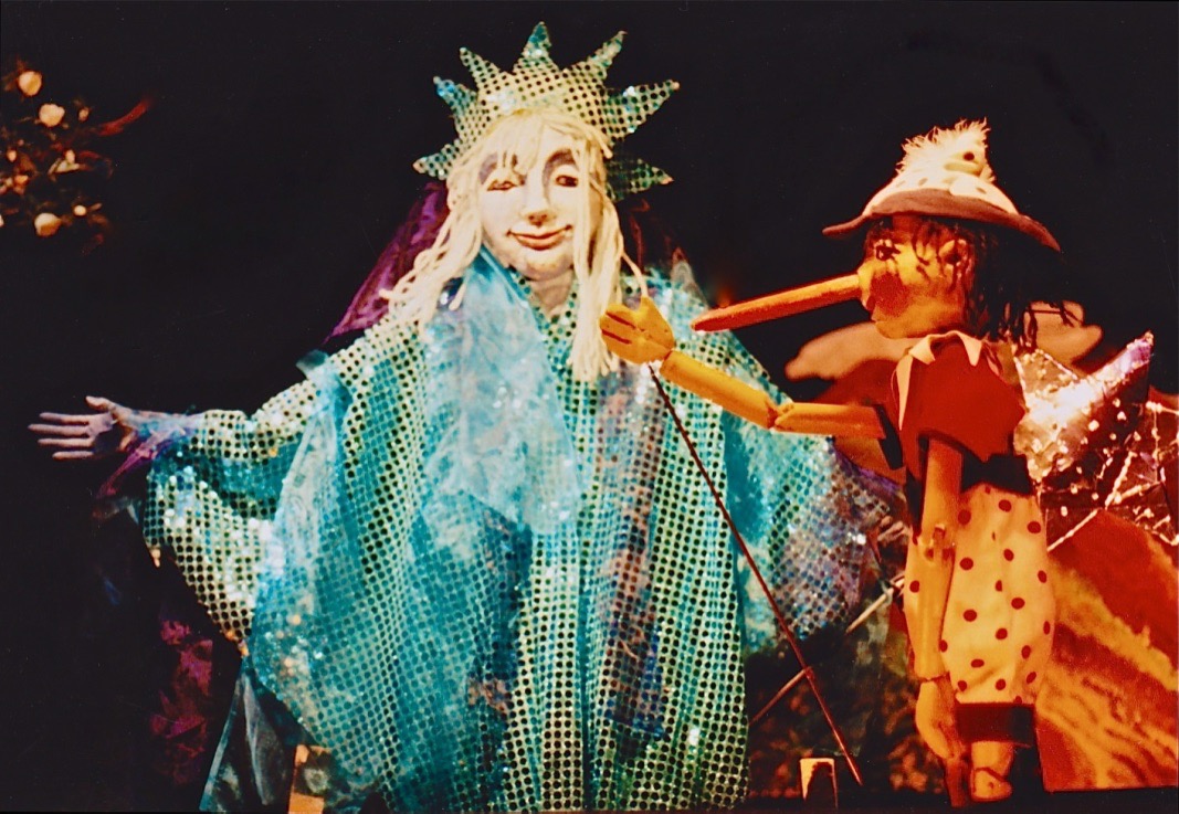 In het bos wordt een tak van een pijnboom betoverd door de Blauwe fee. Nietsvermoedend maakt Gepetto hier een harlekijn van, maar schrikt als de pop, die hij Pinokkio noemt, echt begint te leven. Pinokkio laat zich door de vos en de jongen Lucinolo verleiden om slechte dingen te doen. Hij wordt gewaarschuwd door Krelis de krekel en de Blauwe fee. Als hij alles aan elkaar liegt groeit zijn neus, wat Pinokkio vreselijk vindt. De fee legt hem uit dat zij hem wel wil veranderen in een echte jongen van vlees en bloed, zodra hij kan kiezen tussen goed en kwaad. Uiteindelijk is Pinokkio zo dapper dat hij zijn vader redt uit de buik van de vis en als hij op het droge komt blijkt hij veranderd te zijn in een echte jongen van vlees en bloed.