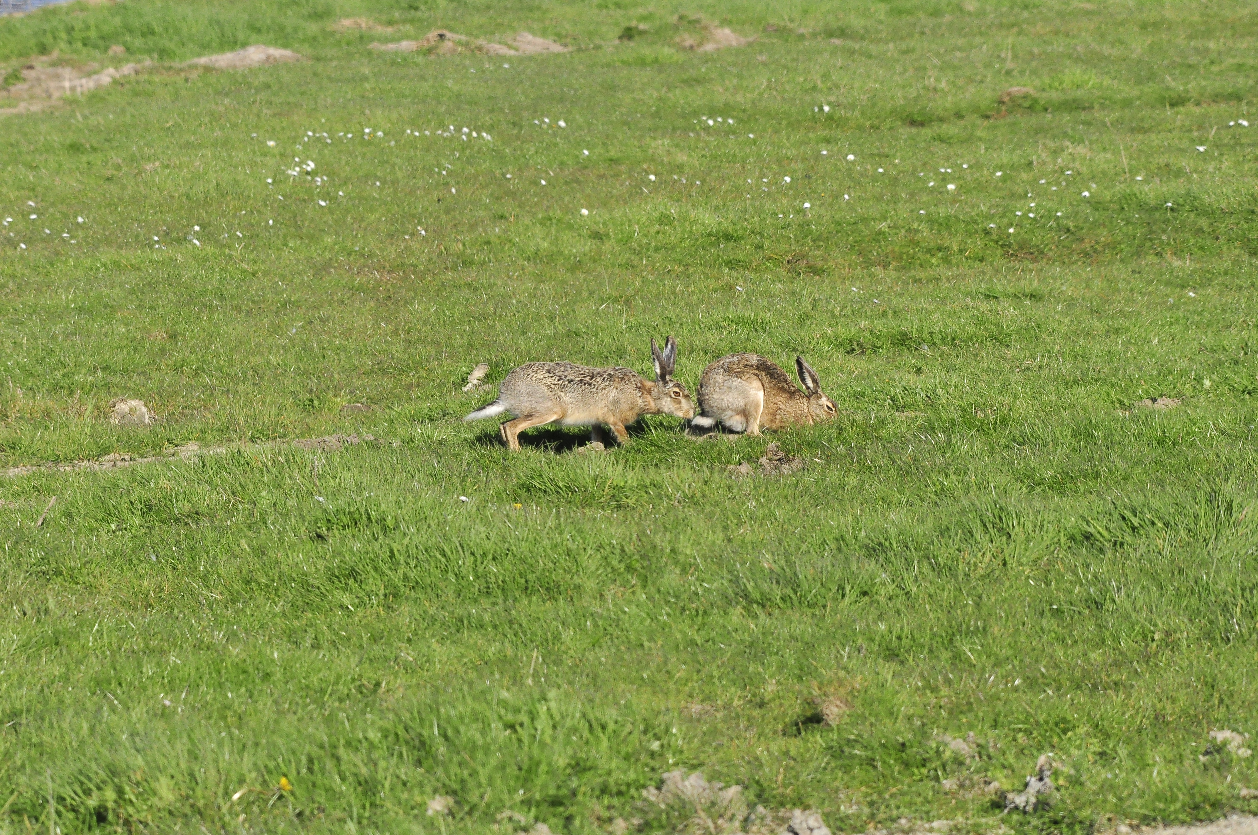 Als het einde van de winter nadert, worden de hazen steeds actiever. De rammeltijd is in volle gang. Dat is leuk om waar te nemen. Of de hazen zoeken elkaar op, of ze proberen juist van elkaar af te komen. Er kan worden gesnuffeld, gerend en in het beste geval gebokst.