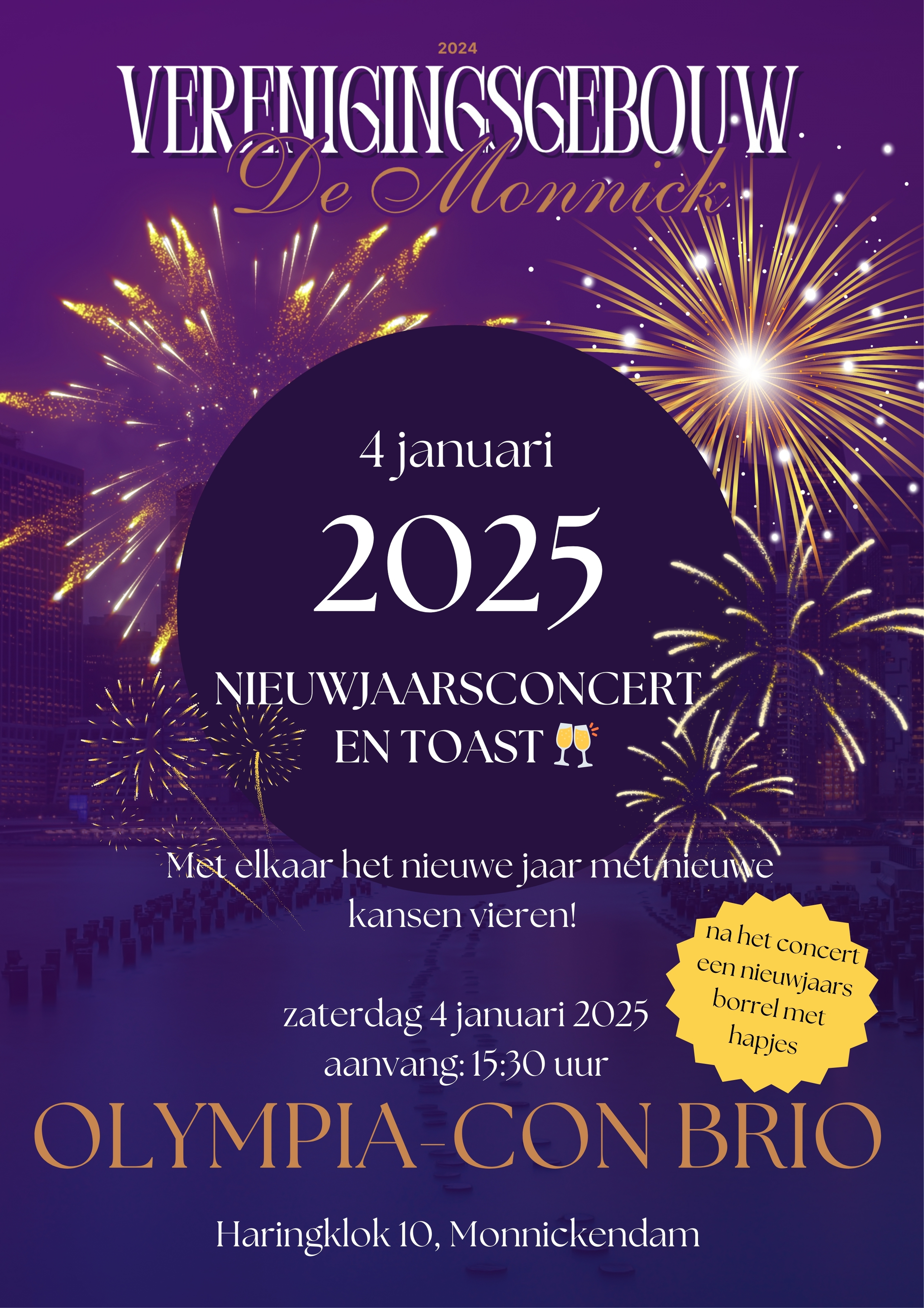 We zorgen voor een feestelijke sfeer, mooie muziek en een hapje en drankje om het jaar goed in te luiden.