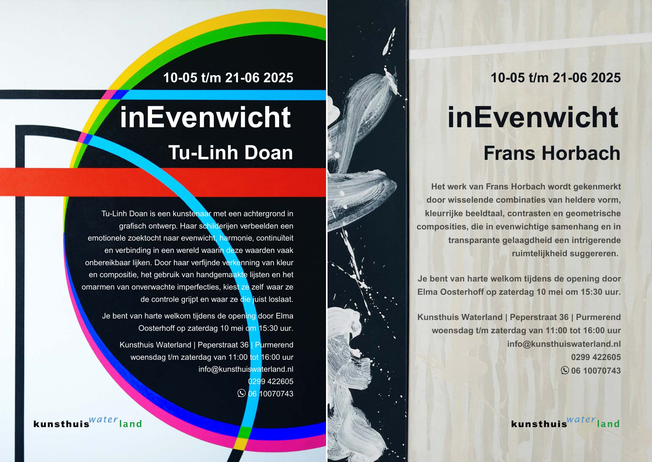 Van 10 mei tot en met 21 juni 2025 presenteert Kunsthuis Waterland, Peperstraat 36 in Purmerend, de tentoonstelling inEvenwicht met werk van Tu-Linh Doan en Frans Horbach. Elma Oosterhoff opent de expositie op zaterdag 10 mei om 15:30 uur.
