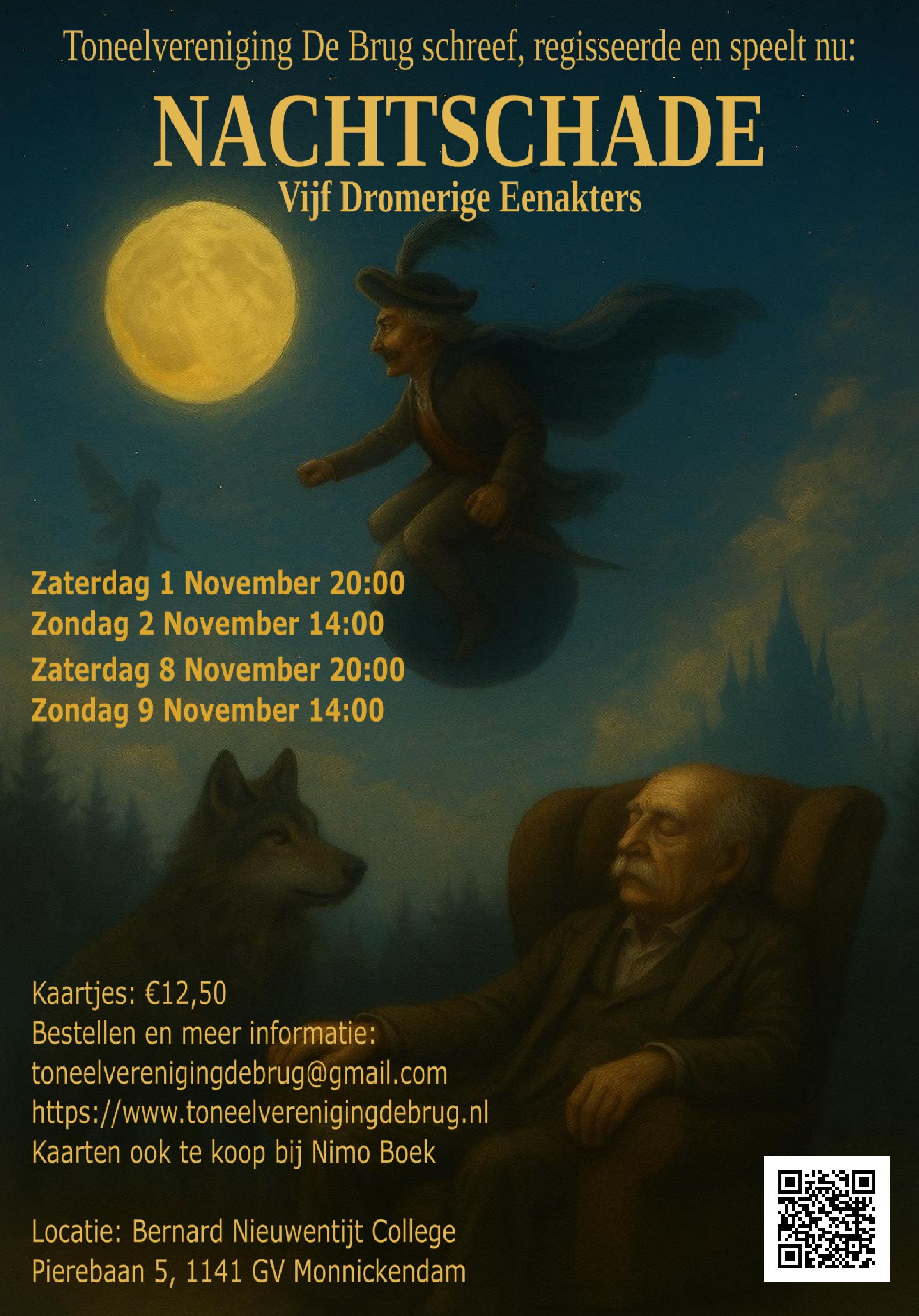 Reserveren kan via de website: www.toneelverenigingdebrug.nl (kaarten zijn ook te koop bij NIMO Monnickendam)