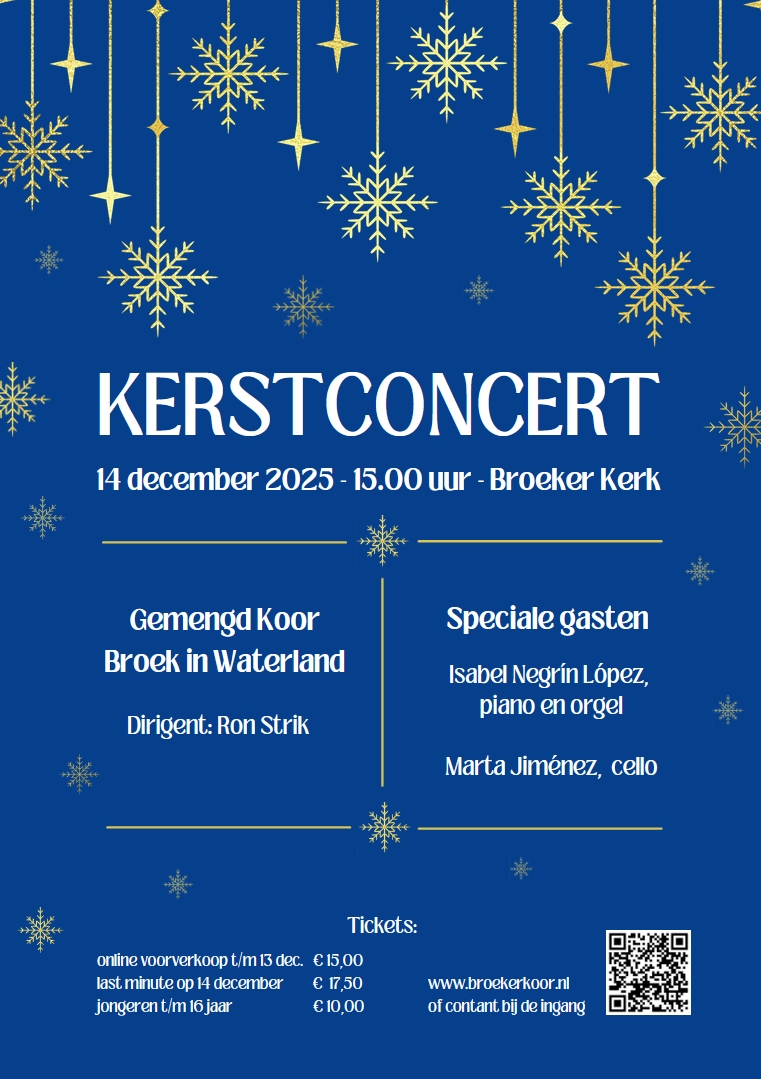 Kaarslicht, kerstbrood en mooie muziek... Laat je onderdompelen in de warme kerstsfeer door het Broeker koor. Met verrassende muzikale intermezzo's op piano, orgel en cello!