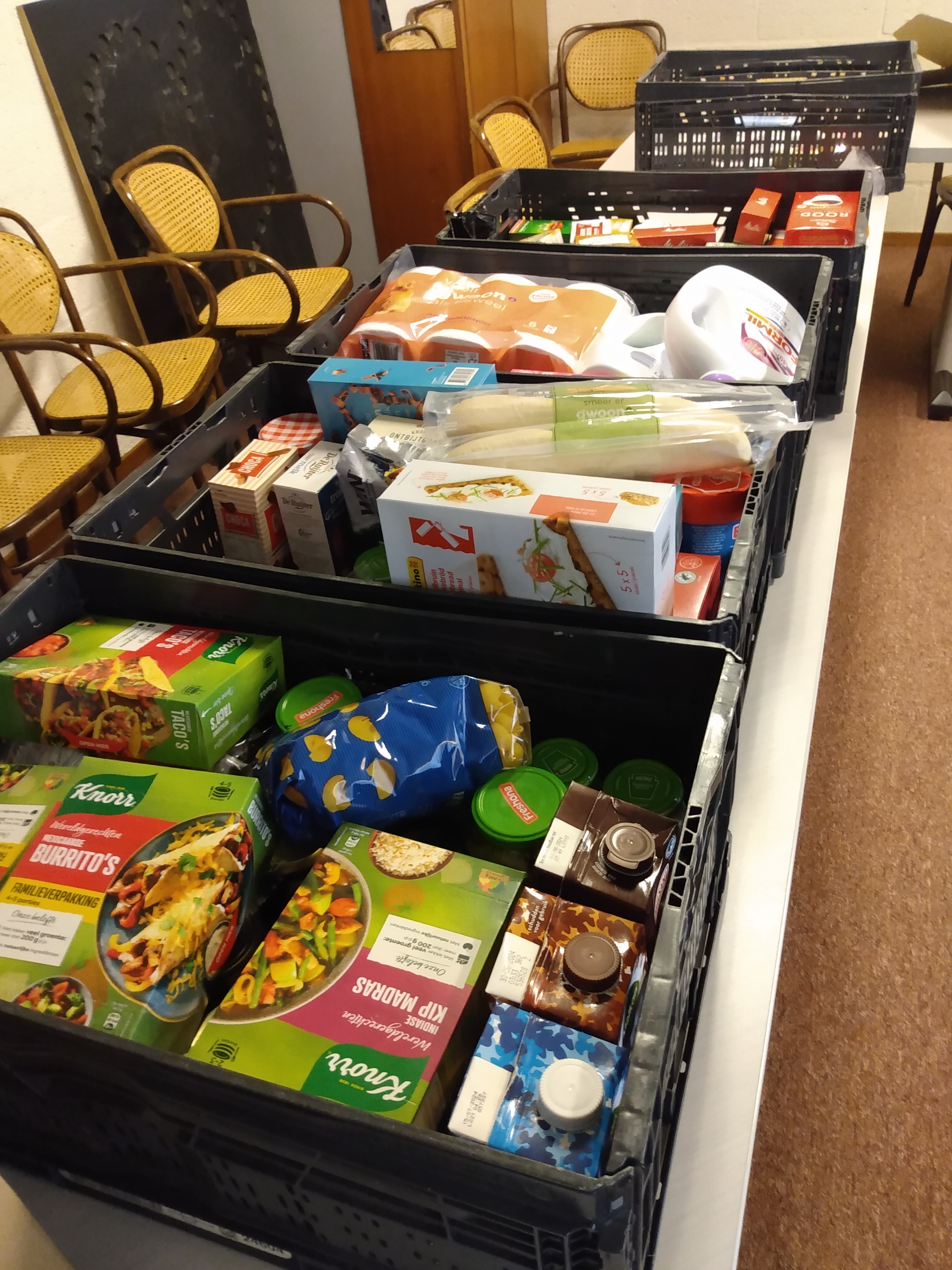 De ingebrachte goederen brengen wij naar de voedselbank in Purmerend, van waaruit het verdeeld wordt.