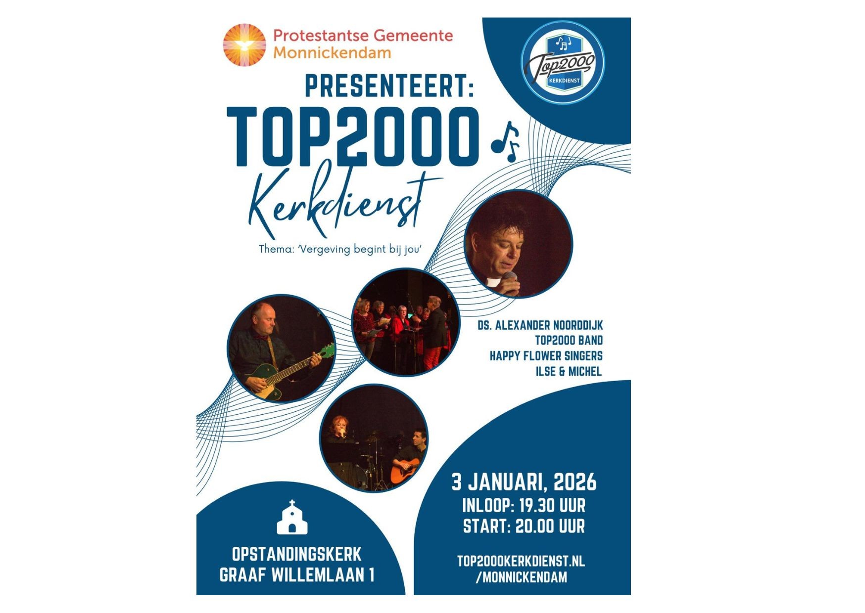 Een viering met nummers uit de TOP 2000 m.m.v. Waterlandse TOP 2000 band , Ilse en Michel en leden van de Happy Flower SingersLuister naar een inspirerende bijdrage van ds Alexander Noordijk of steek een kaarsje aan