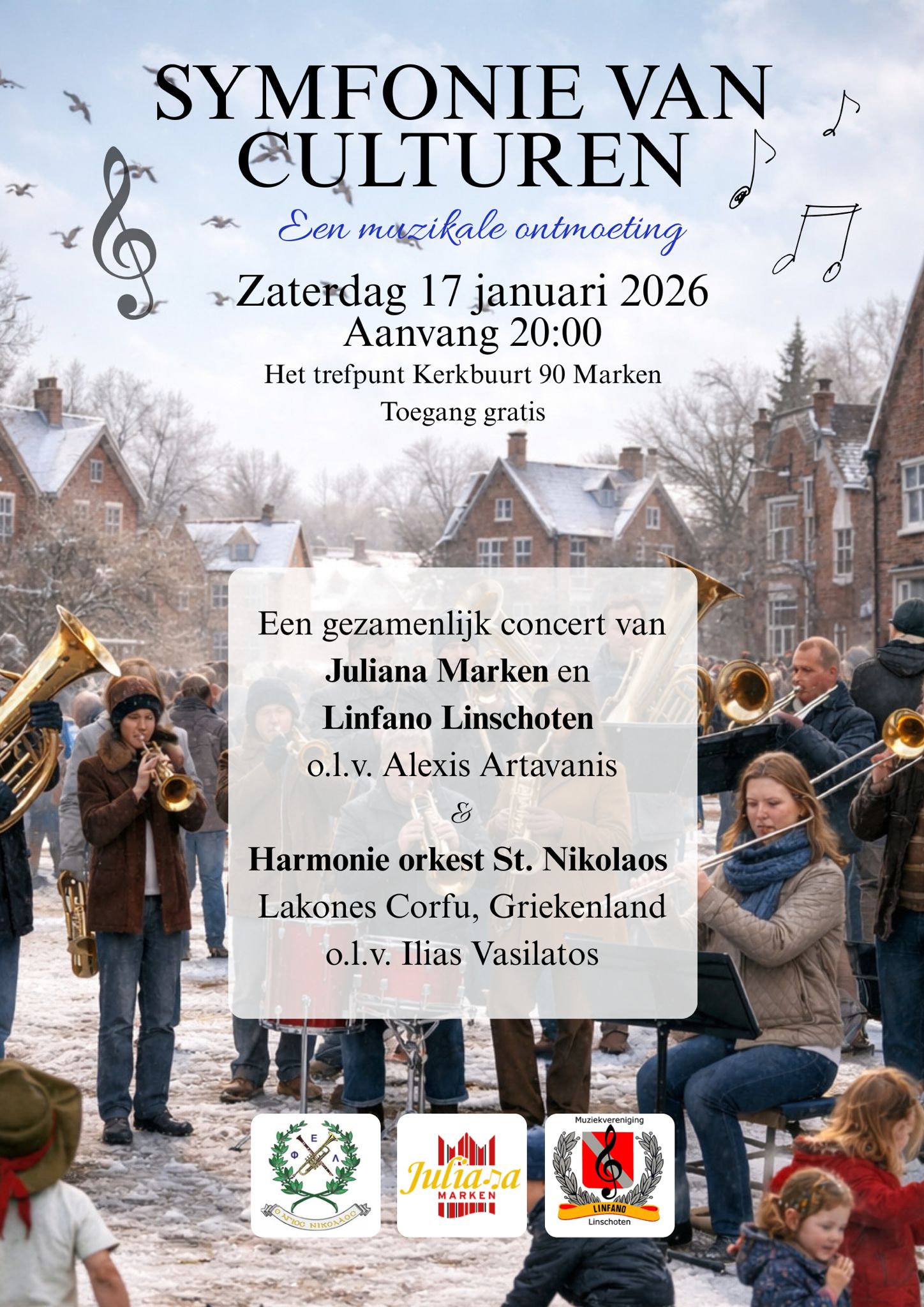 Uitwisselingsconcert met Juliana uit Marken, Linfano uit Linschoten en Harmonie orkest St. Nikolaos uit Lakones Corfu, Griekenland.