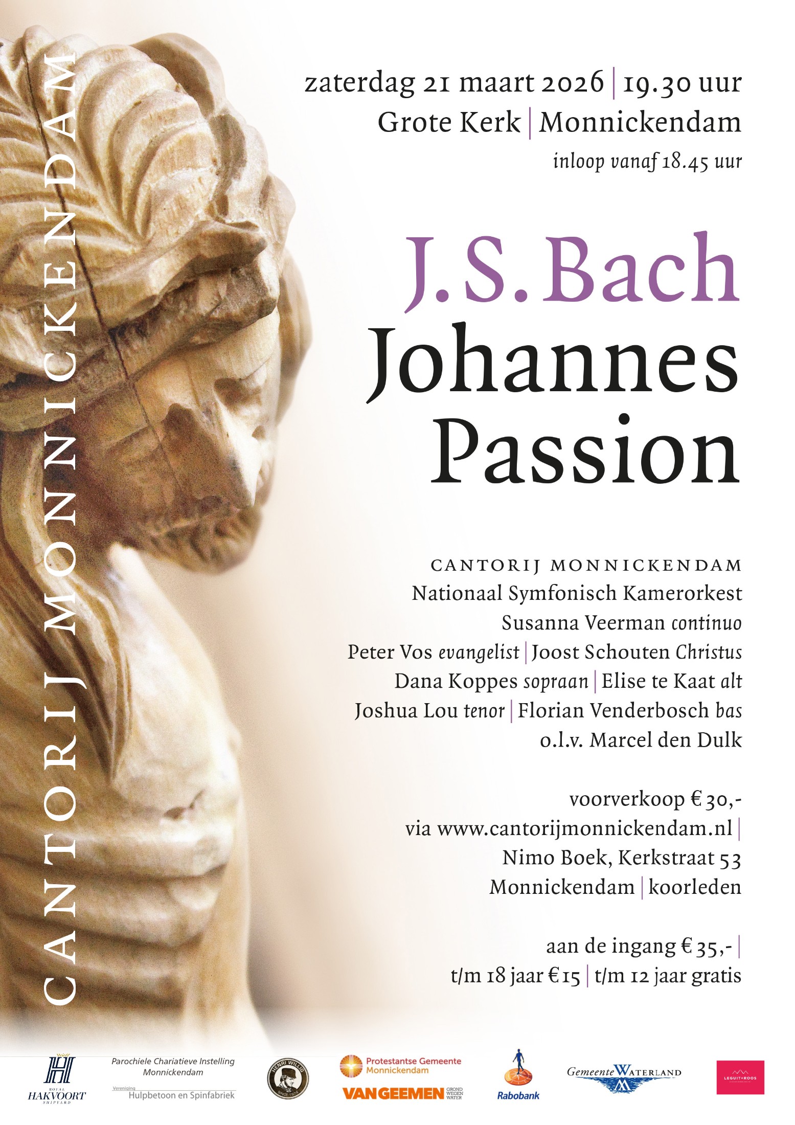 En we zijn trots op de gerenommeerde solisten en op het Nationaal Symfonisch Kamerorkest (NASKA) die aan de uitvoering op 21 maart in de grote Kerk van Monnickendam deelnemen.