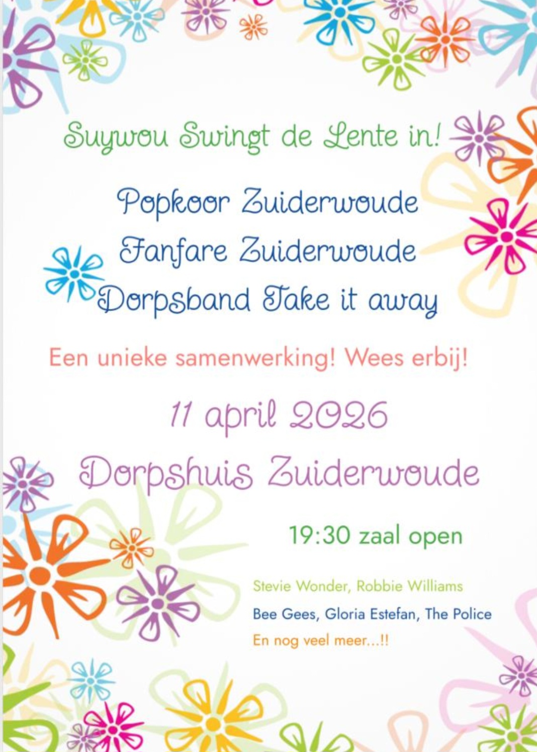OP 11 april 2026 is in het dorpshuis te Zuiderwoude een swingende muzikale avond.